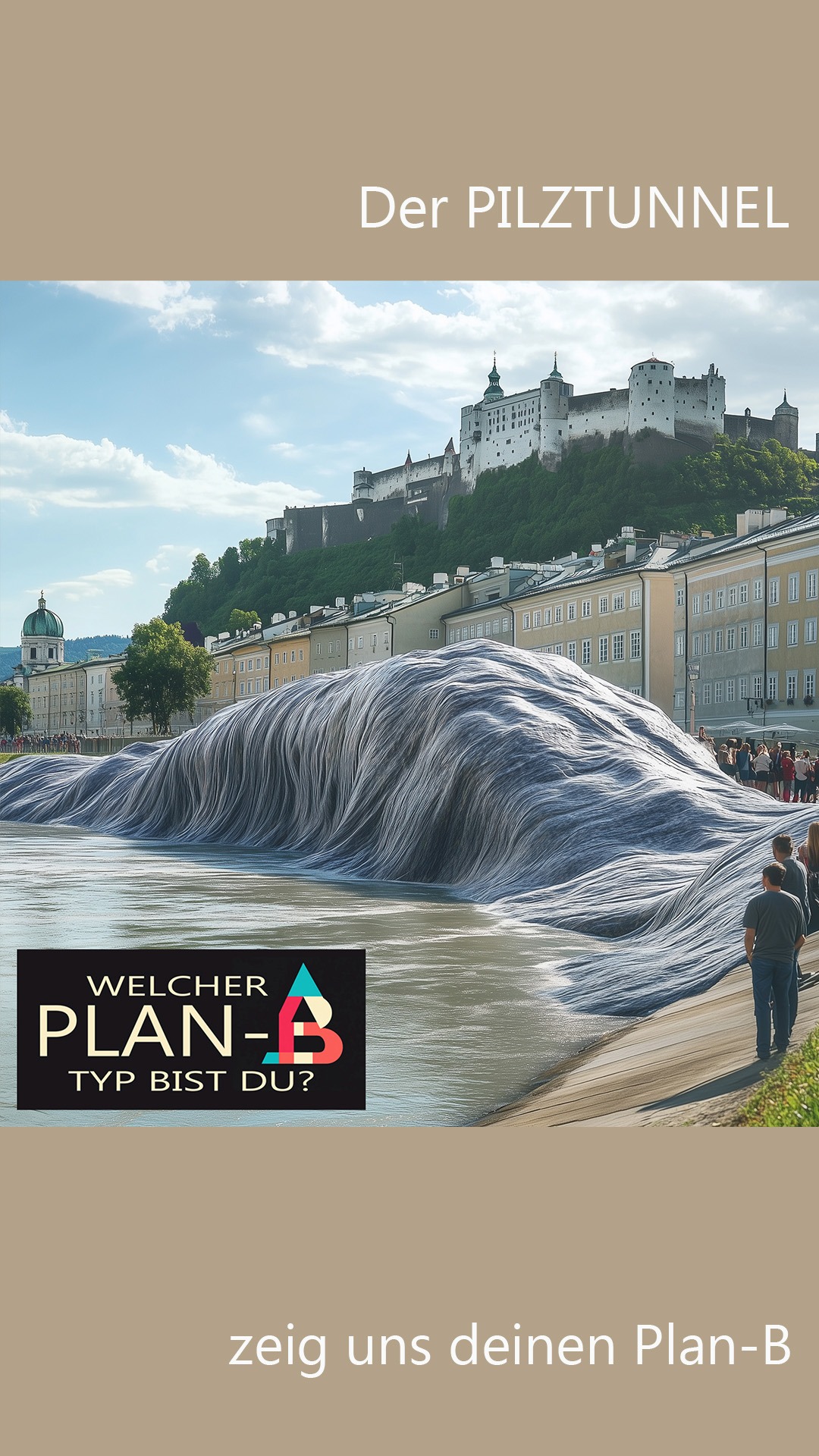 der PILZTUNNEL, wächts mit seinen Aufgaben. Hier sehen wir die Mozartstegstation im Aufbau ... die Pilze erreichen einen Durchmesser von bis zu 12 Metern und schützen von Unwelteinflüssen, Wasser und Wind ... ein wunderbar wachsender PLAN-B ... und jetzt die Frage; Welcher Plan-B Typ bist du?